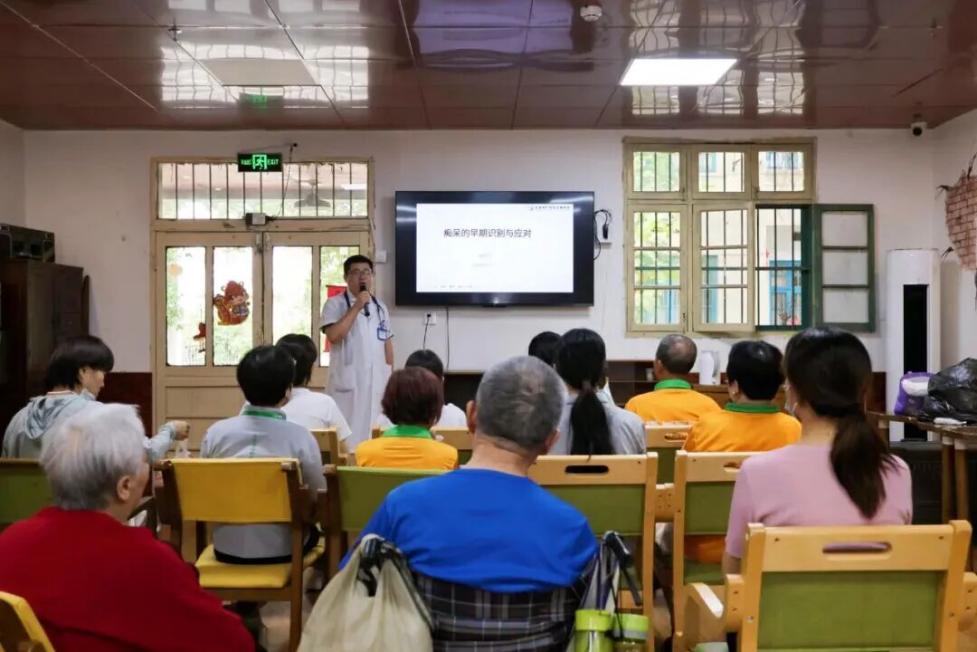 針對高血壓、糖尿病、冠心病、癡呆等老年人常見慢性病,專家們開展了個體化用藥指導、飲食建議和康復方案制定,幫助老人更好地進行日常健康管理。時值阿爾茨海默病日來臨之際,神經內科副主任鐘岳飛還為老人進行了認知障礙篩查,并作了《癡呆早期識別與處理》專題授課,詳細解讀了癡呆的十大早期征兆及應對措施,有效提升了工作人員對認知障礙老人的照護能力。
