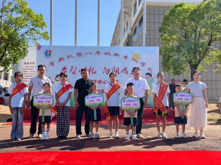 近日,余干縣古埠鎮中心小學在校園足球場舉行了“2025年秋季開學典禮暨一年級新生開筆禮”活動?;顒右浴皢⒅敲鞫Y,向陽成長”為主題,旨在歡迎一年級新生加入學校大家庭,營造溫馨向上的入學氛圍。學校班子成員、一年級師生及家長、各年級學生代表共同參與此次活動。